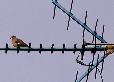 The only reason I bring up these literary allusions at all, is to say that, it so happens that like the above-mentioned bard, I too more or less cohabit with a covey of cooers and crooners. They lodge covertly in a minor copse abaft our street, a sylvan col, to coin a phrase; and as we lack elms hereabouts, they perch in immemorial TV antennae and do their memorable moaning there. I am dashing a copy of this off to the City, to see if some elms could be installed on our street.